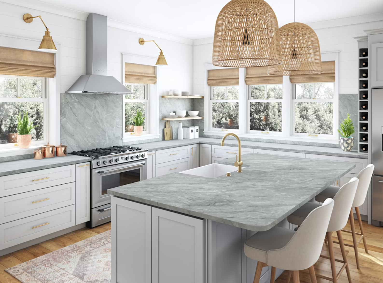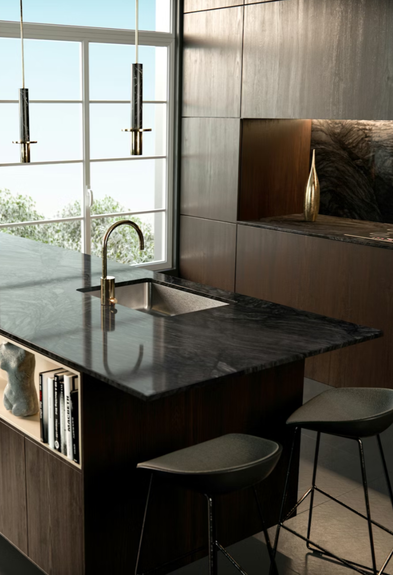 Granite and quartzite with special stain-resistant protection to provide spaces with visual and functional advantages.